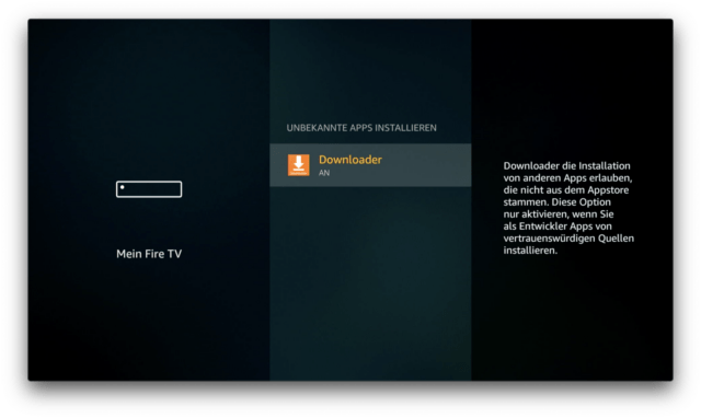 Wie bei Android üblich erlaubt auch der Fire TV ab Werk keine Installation aus App-Store-fremden Quellen.