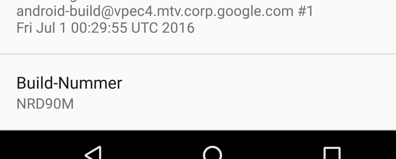 Achtet nach dem Neustart und der Installation unbedingt darauf, dass in den Einstellungen im Bereich "Über das Telefon" die Build-Nummer NRD90M auftaucht. Nur das ist die finale Versionsnummer von Android 7. Ist das nicht der Fall, hat Euch das Beta-Programm eine Beta untergejubelt, was beim älteren Nexus 6 noch passieren kann (hierzu gibt es bei den XDA-Devs und Co. allerdings unterschiedliche Berichte...). In diesem Fall: Keine Panik! Ihr bekommt in den nächsten Tagen definitiv das Update für die endgültig finale Version von Android 7.0 angeboten. Danach könnt Ihr mit Schritt 4 fortfahren.