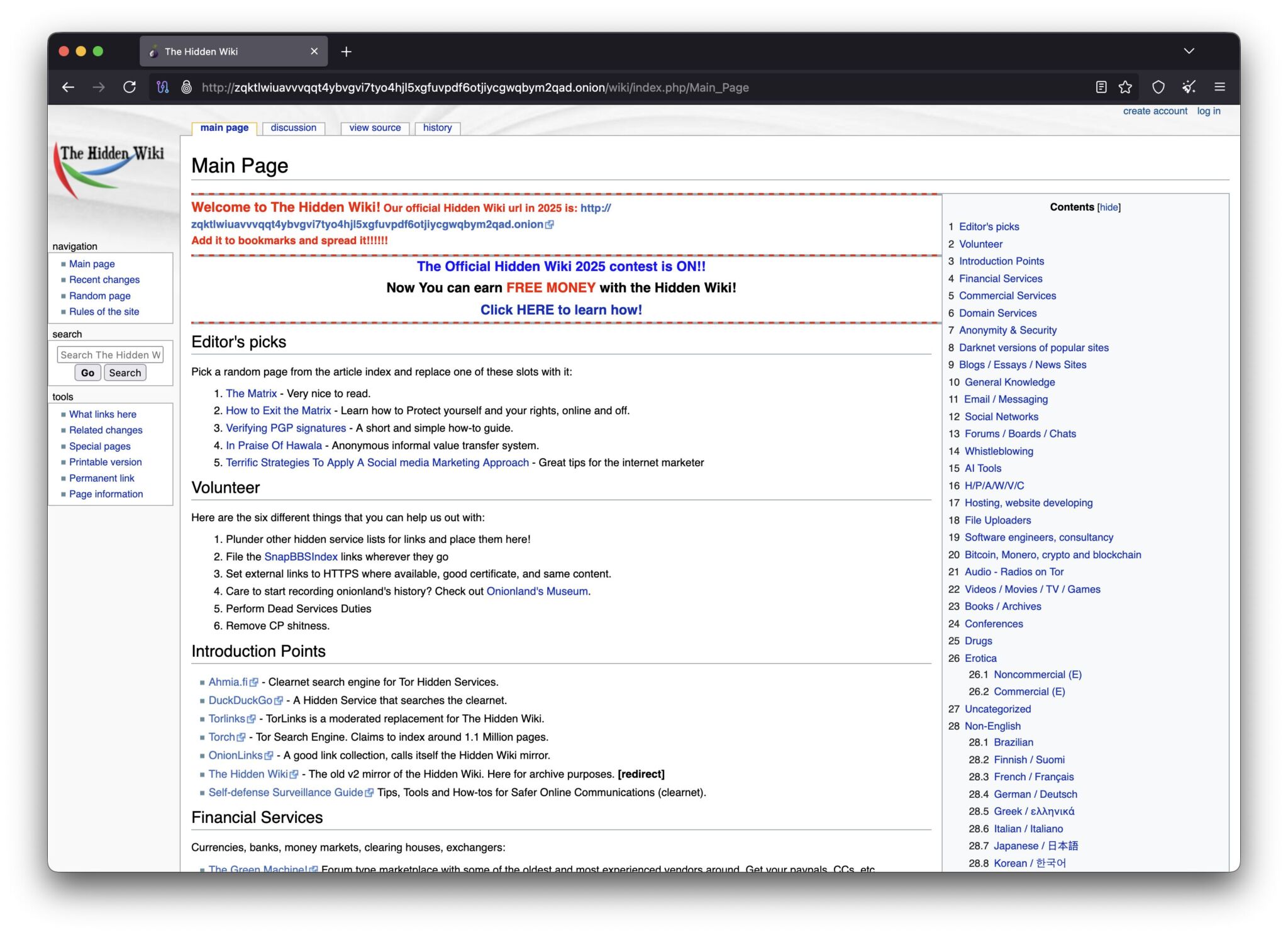 The Hidden Wiki ist ein guter Startpunkt für das Darknet.