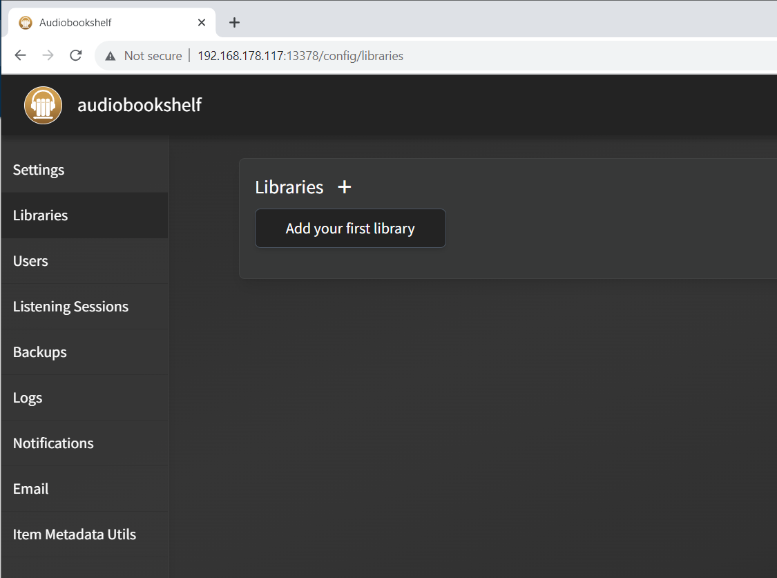 Standardmäßig hört Audiobookshelf auf den Port 13378. Öffnet im Browser also die URL des Servers, etwa 192.168.178.200:13378.