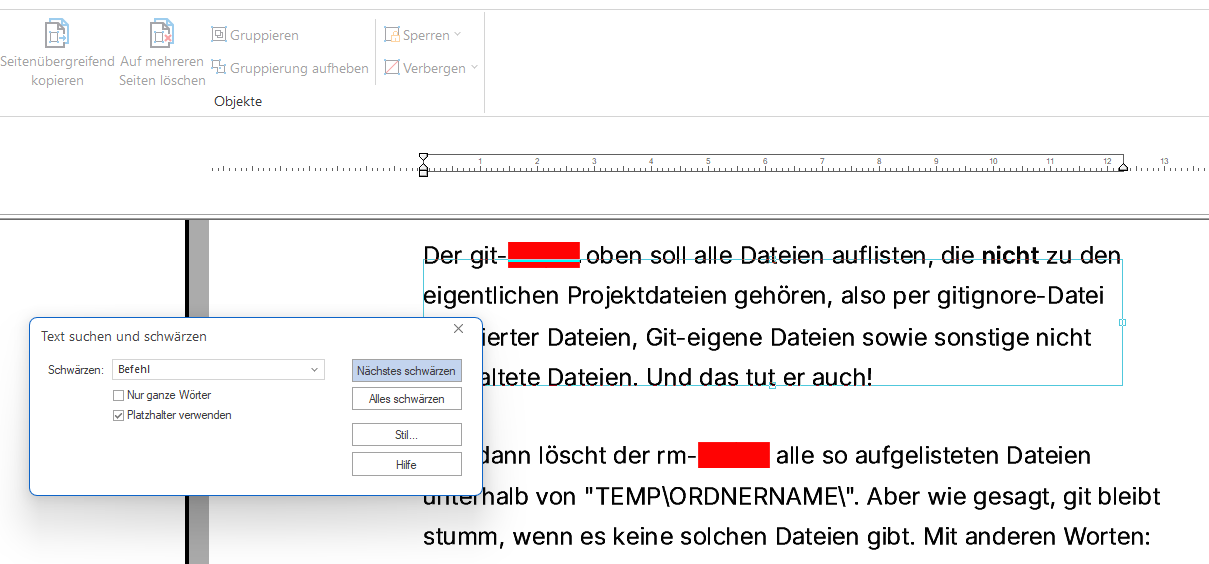 Fun Fact: Draw hat auch ein explizites Schwärz-Tool - das aber leider auch wieder ganze Seiten zu Bildern macht ...