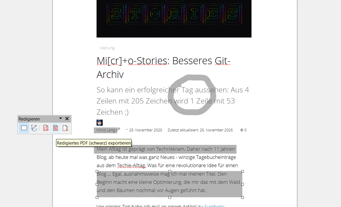 Die Aufgabe: Ich musste aus einigen kurzen PDFs einige Namen schwärzen - nichts, wofür man Stapelverarbeitung bräuchte. Also habe ich mir ein paar PDF-Werkzeuge angeschaut, von Open Source über Freeware bis zu Demo-Versionen. Und eigentliche alle haben so gar nicht überzeugen können.