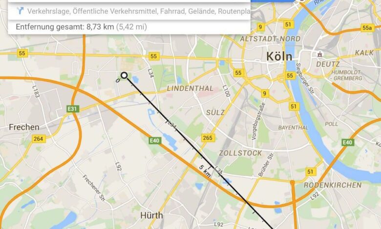 Gestern Abend hörte ich beim Genuß von Transformers 4 ein Wummern, als würde draußen auf der Straße ein Tiefergelegter seine Anlage durchblasen – oder als wäre eine große Party ein paar Blocks weiter. Wie ich später herausfand, war es das aber nicht: Es war das AC/DC-Konzert am Müngersdorfer Stadion, das recht respektabel den ganzen Kölner Südwesten beschallt hat. Natürlich wollte ich wissen, wie viel Luftlinie die Altrocker mit ihrem Radau überwunden haben, was ganz einfach per Google Maps geht.